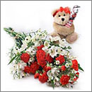 Carnations, Small Teddy Bear, Chocolate